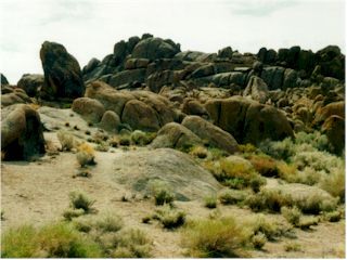 kolem oblasti nazývané Alabama Hills, kde se nachází skály roztodivných tvarů.